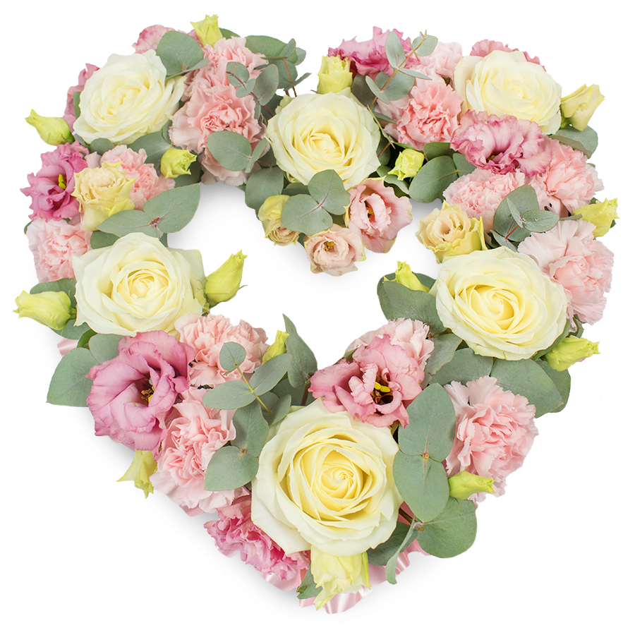 Our Refined Tribute Bouquet is a perfect expression of love and remembrance. This beautiful arrangement includes white roses, pink carnations, pink lisianthus, and lush eucalyptus leaves, meticulously arranged to convey your heartfelt sentiments.